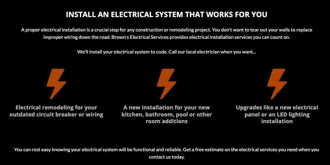 Did you wrap up a remodeling or construction project, only to find out the electrical work wasn’t finished properly? Brown’s Electrical Services can take over where your previous contractor left off. We correct code violations for all kinds of home improvement projects. Hire one of our electricians to finish incomplete electrical work, from wiring to installing smoke and carbon monoxide detectors.
